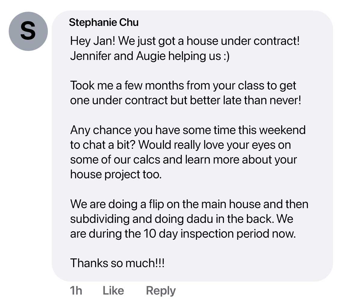 simple systems to consistently find deals and grow your own portfolio of cash flowing assets.